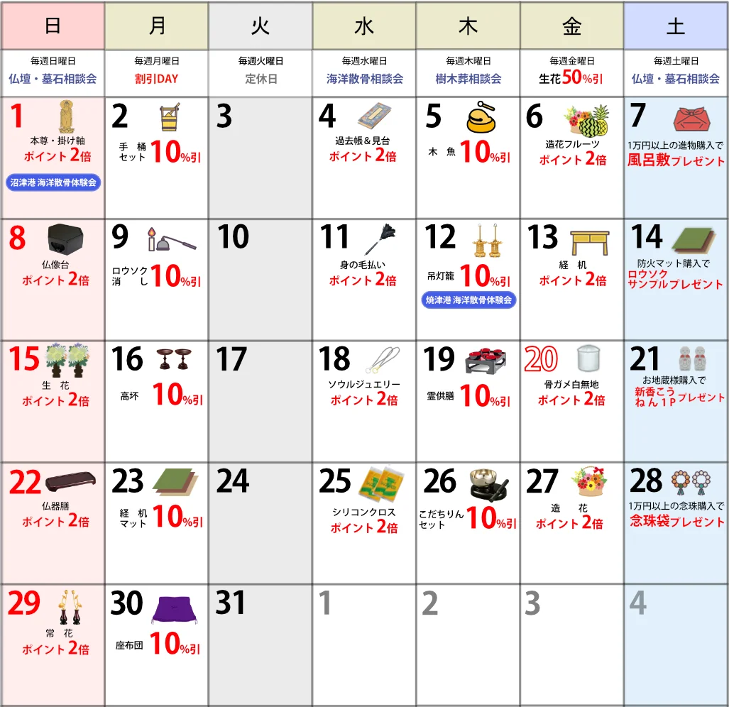 - 【終了】2025年 秋のお彼岸キャンペーン&セール