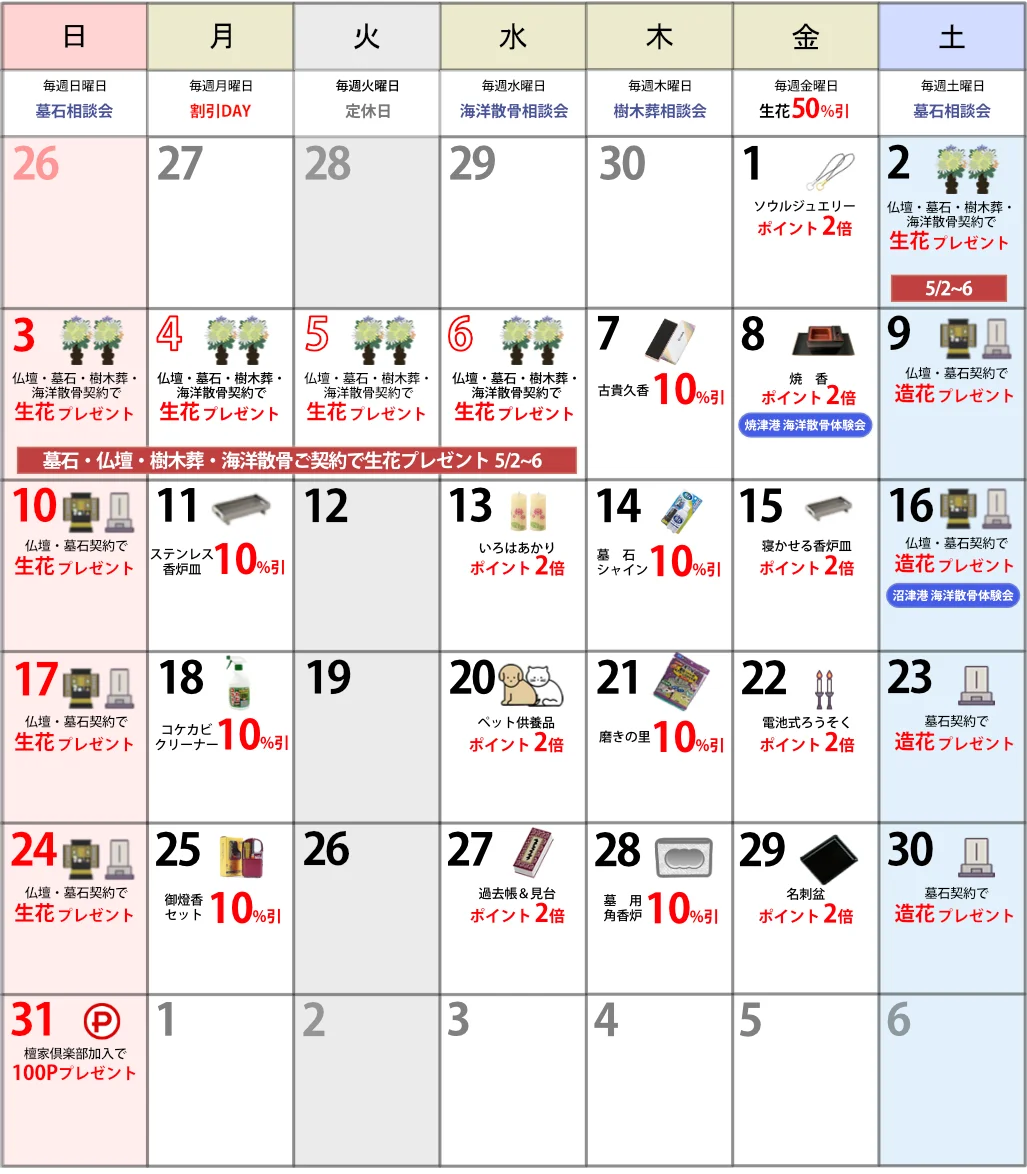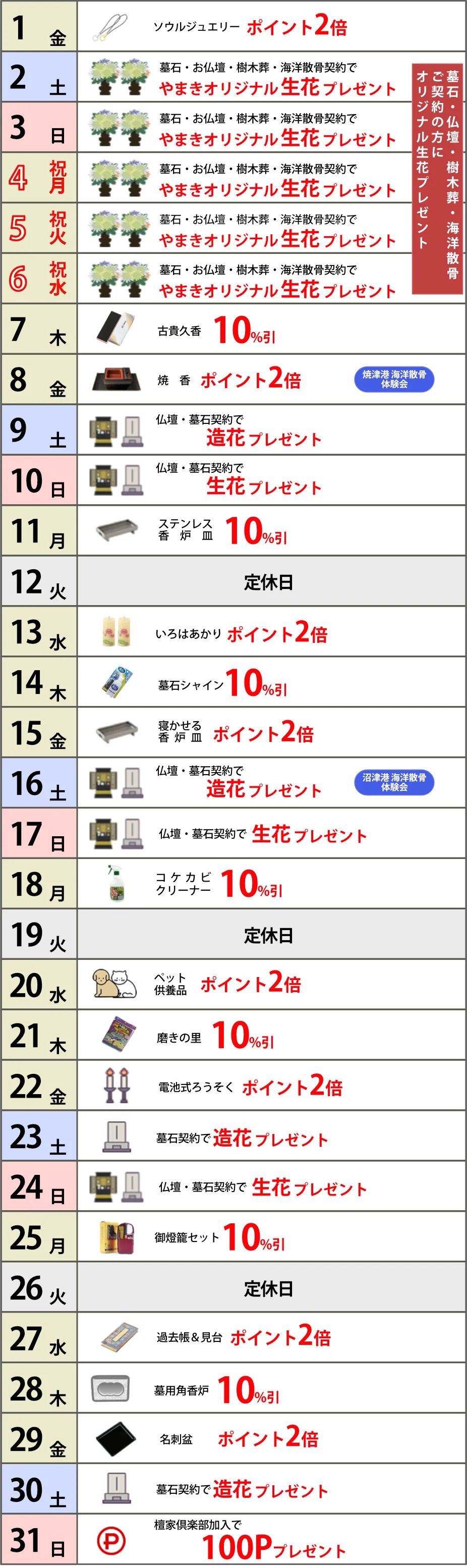 お仏壇のやまきのセールイベントや営業案内など新着更新情報をご案内します。