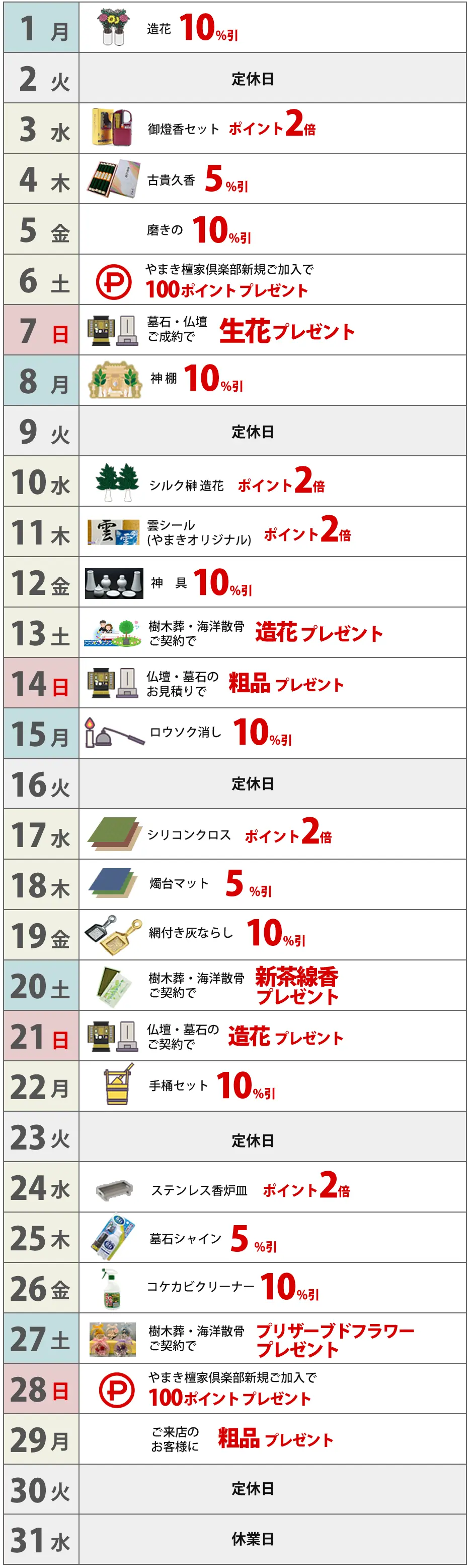 お仏壇のやまきのセールイベントや営業案内など新着更新情報をご案内します。