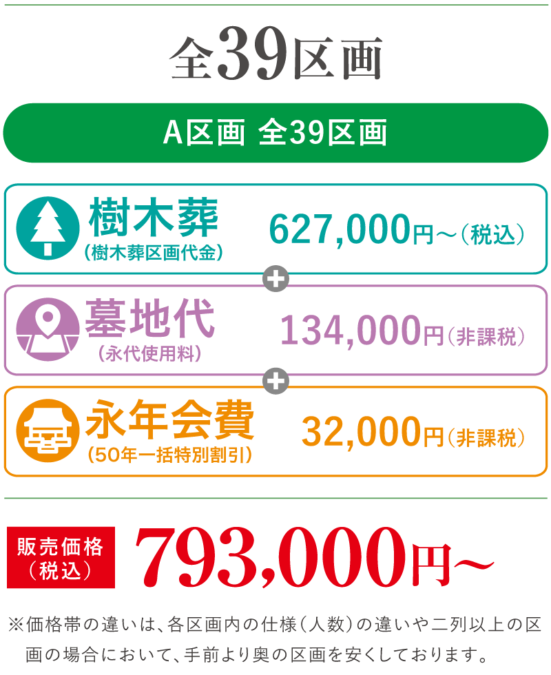 6人用の大きなサイズは3区画用意しており3人用をメインとした全39区画の樹木葬です。