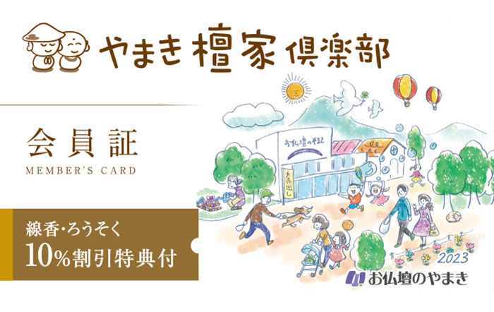 お仏壇のやまき各店での店内商品ご購入や各種サービスをご利用いただくと、「やまき檀家倶楽部」カード(ポイント還元付)を進呈、自動的にやまき檀家倶楽部へ入会となります。