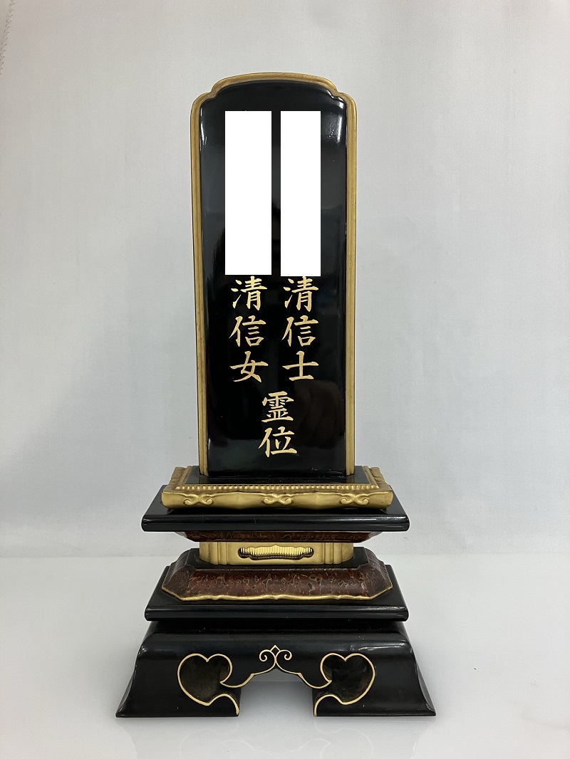 位牌追加書きのご依頼です。 夫婦位牌にするために 書かれている戒名を一度綺麗に消す作業です。 (※戒名の一部を画像処理してあります)