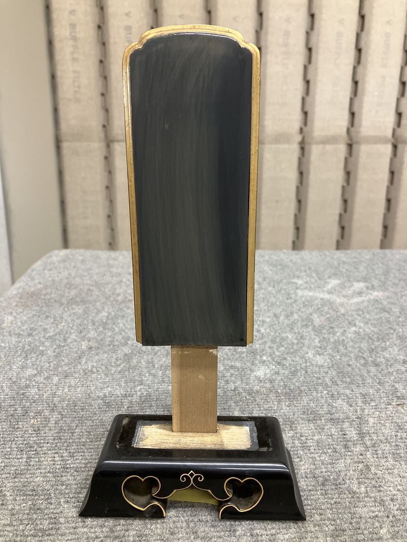 戒名が消えました。 ペーパー掛け作業をしたため 艶がなくペーパーの跡が残っています。