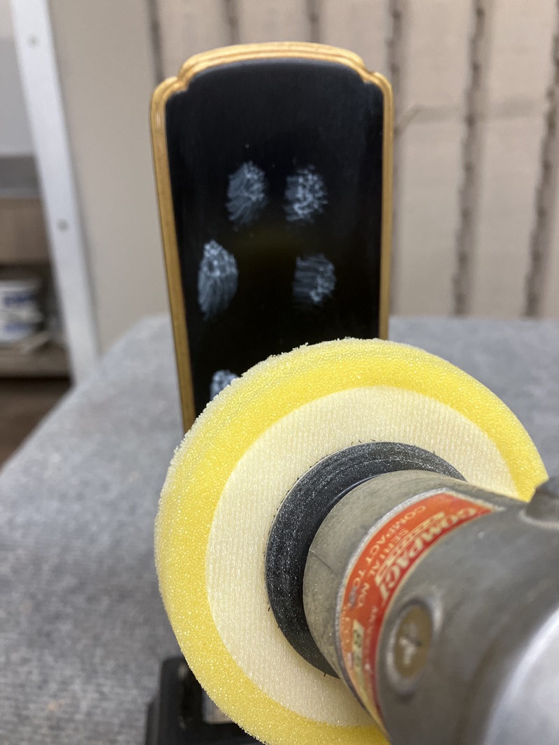乾燥機から出し よく冷めたら機械を使用してコンパウンドで 磨き 艶を出します。