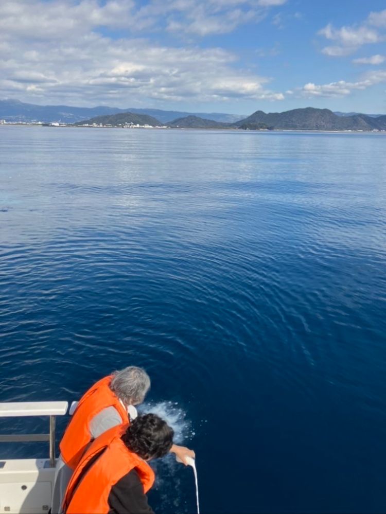 この日は、風もなく海も穏やかでした。 故人様を偲びながら遺灰を海へと撒きます。
