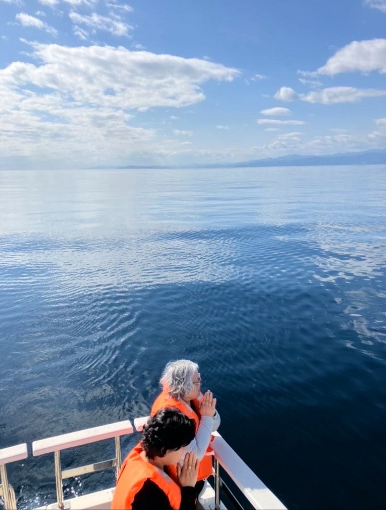 鐘を鳴らし船がゆっくりと旋回して、 黙祷、合掌をします。 スタッフ一同、安全第一に心のこもった温かいセレモニーを 心掛けております。