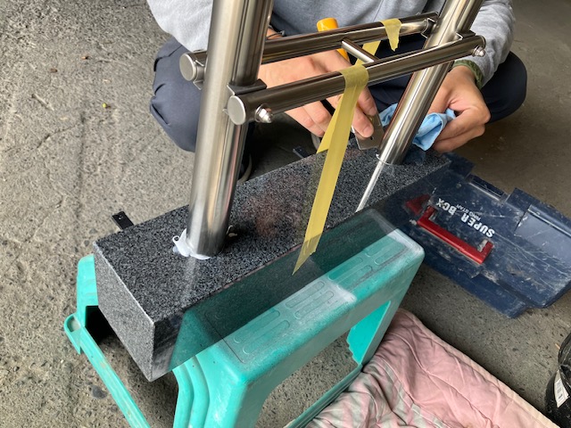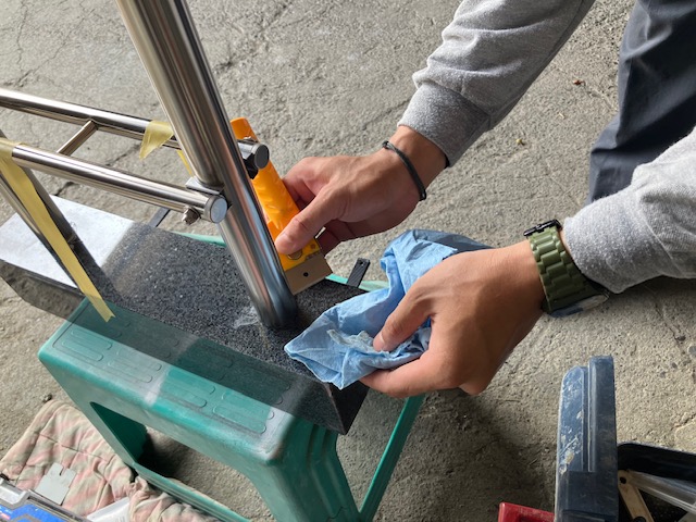 ステンレスを入れた後、水平を図ります。