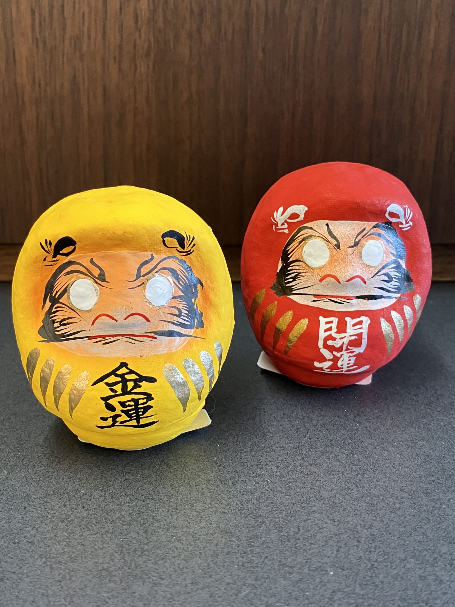 ちりめんで出来た鏡餅と開運・金運のだるまさんです。