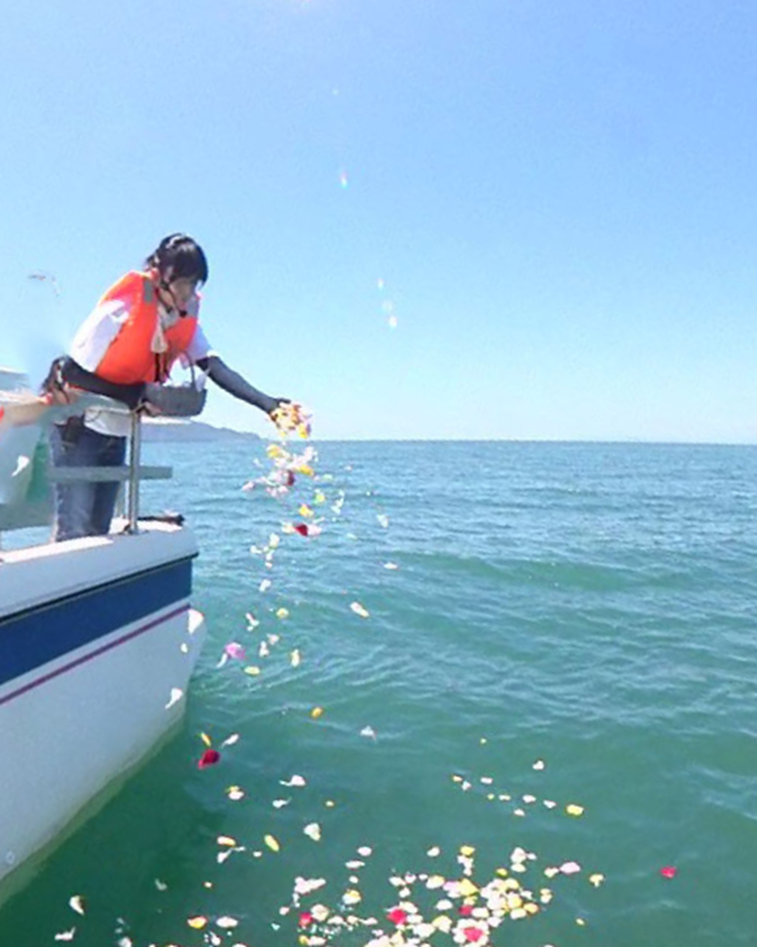 やまきのスタッフがお客様に代わり散骨海域で散華します。