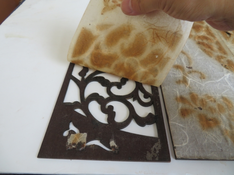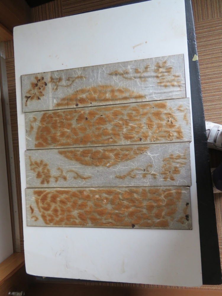 紋紗に組子を乗せ 糊を十分乾燥させます。