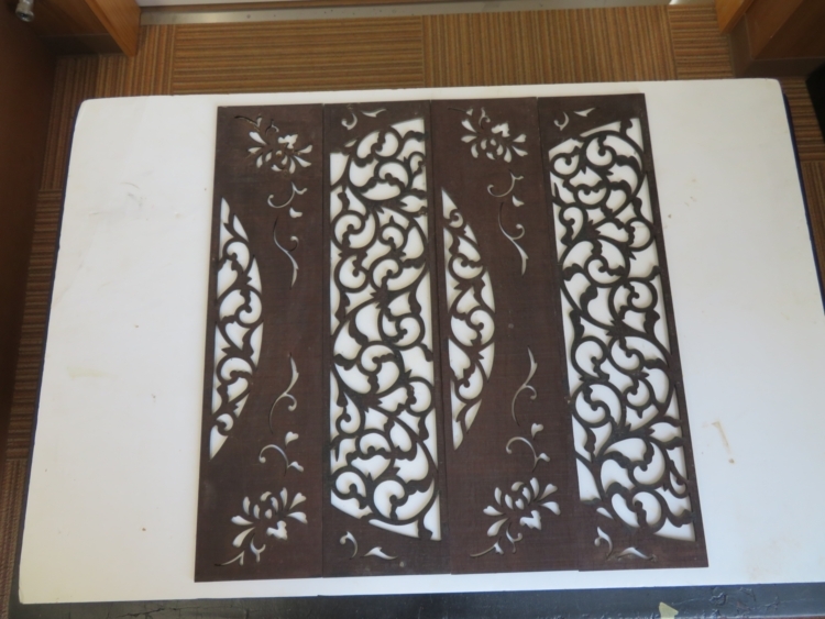 組子のサイズに綺麗にカットして完成です。 組子の模様がはっきりと浮き出てとても綺麗な 仕上がりになりました。