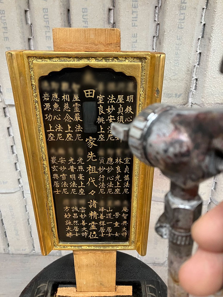 お位牌の塗り直し作業