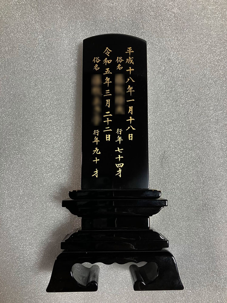 お位牌を1名から2名書きにするための工程を紹介いたします。 (蓮付春日面粉)