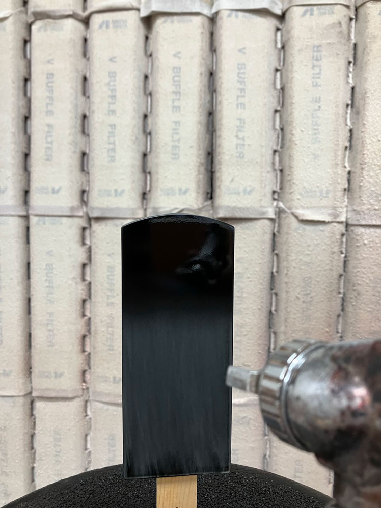 スプレーガンで、透明(クリア)の塗料を吹き付けます。