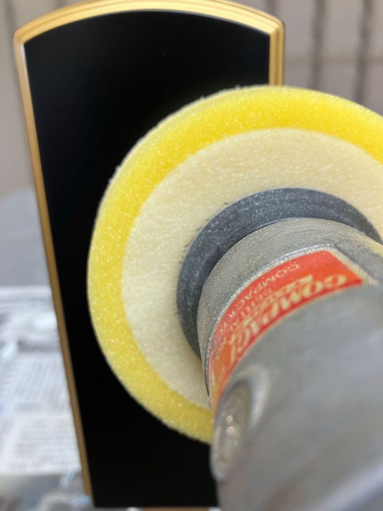 塗装が乾いた後、コンパウンドで表面を磨きます。 コンパウンドとは磨き剤のことで、これをポリッシャーという器具を使い効率よく磨き上げます。
