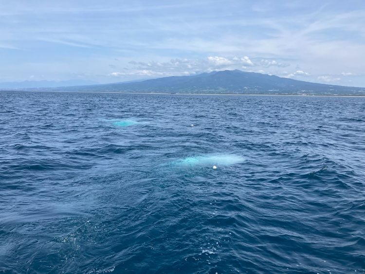 撒かれた遺灰は、ゆっくりと海へと広がり沈んでいきます。