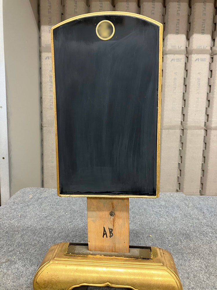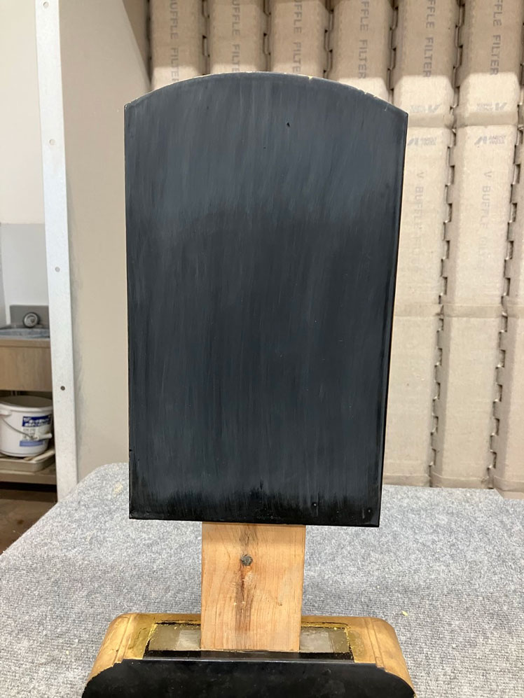 札板両面を綿コットンで綺麗にして、台座を取り付けて完成です。