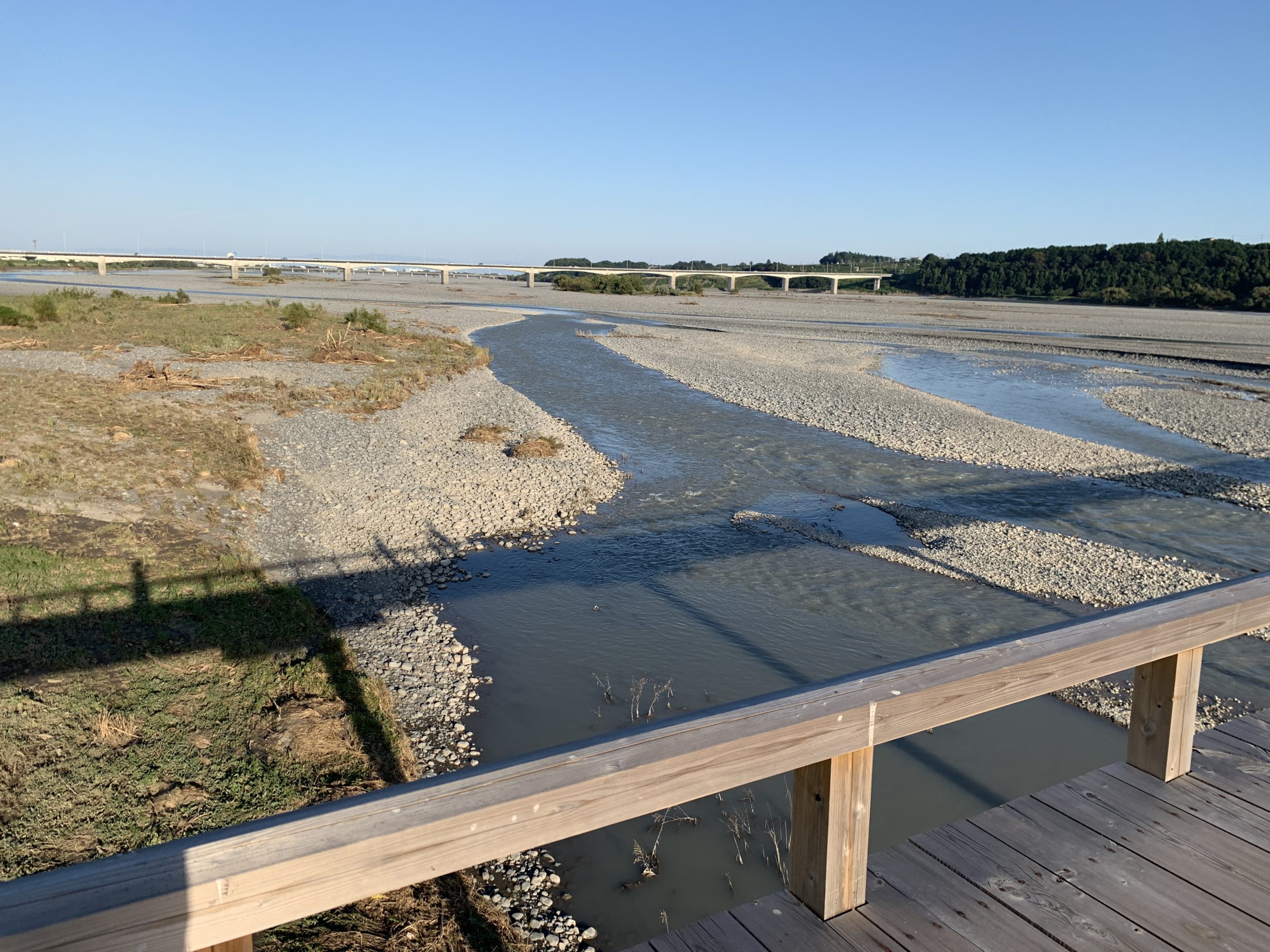 板の隙間から、下に流れる大井川が見えたりするので、