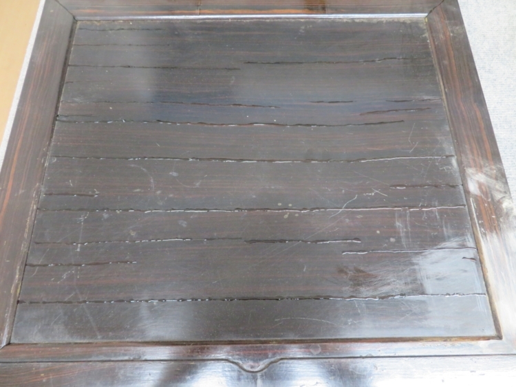 今回は仏壇の膳引き部分(仏具を置くように引き出して使います) の修理のご依頼です。 長年の使用の為だいぶ傷や割れている部分が目立ちます。