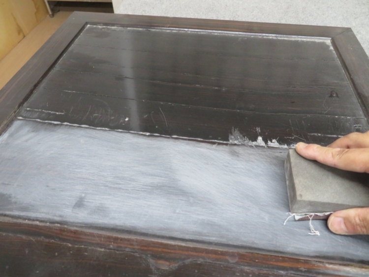 接着剤が乾いたところで滑らかにするために 丁寧にペーパーをかけていきます。