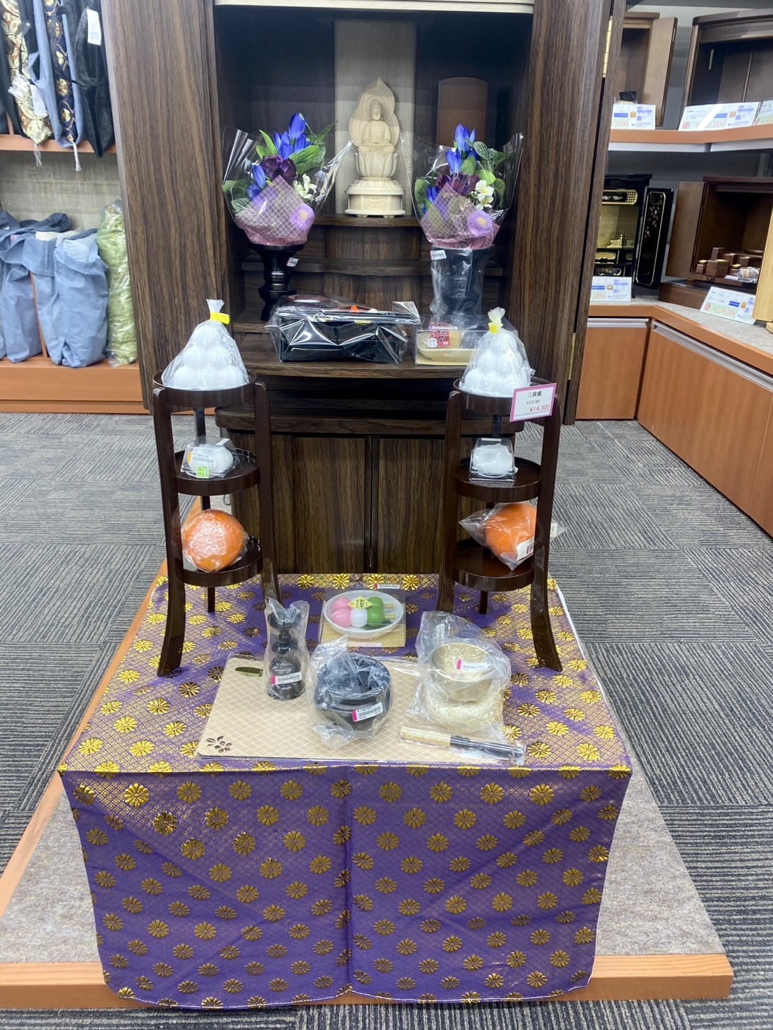 お仏壇のやまきでは、キャンドルのお団子やちりめんの豆大福など、傷まない和菓子がたくさんあります。