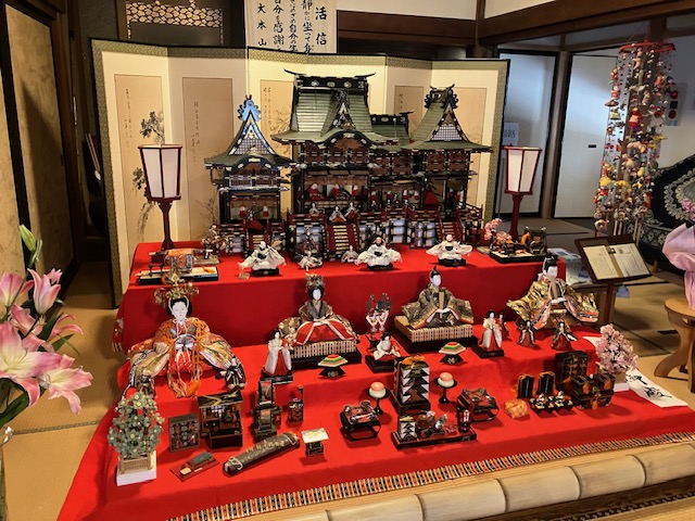 豪華なひな人形と言えば、「十人飾り」や「十五人飾り」といった段飾りをイメージされる方が多いかもしれませんが、実はさらに豪華な「御殿飾り」と呼ばれるひな人形があり、先日お邪魔した寺院に飾られていたので思わず写真を撮ってしまいました。