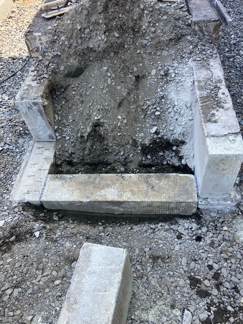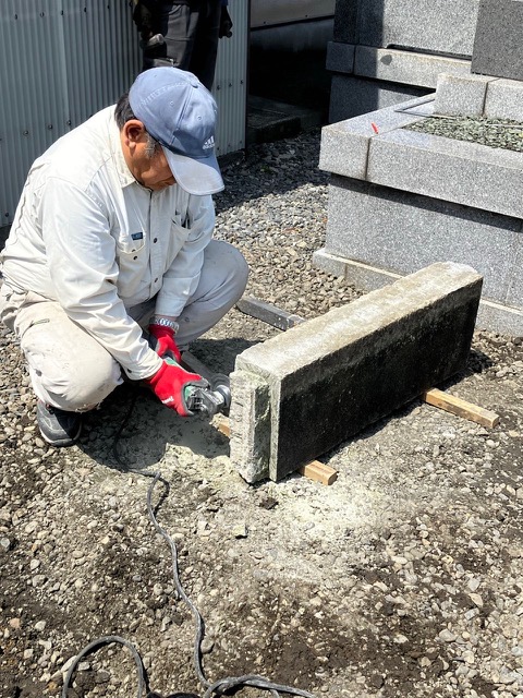 もともと右隅にあった部材を加工して、真ん中の墓地の右面として利用します。