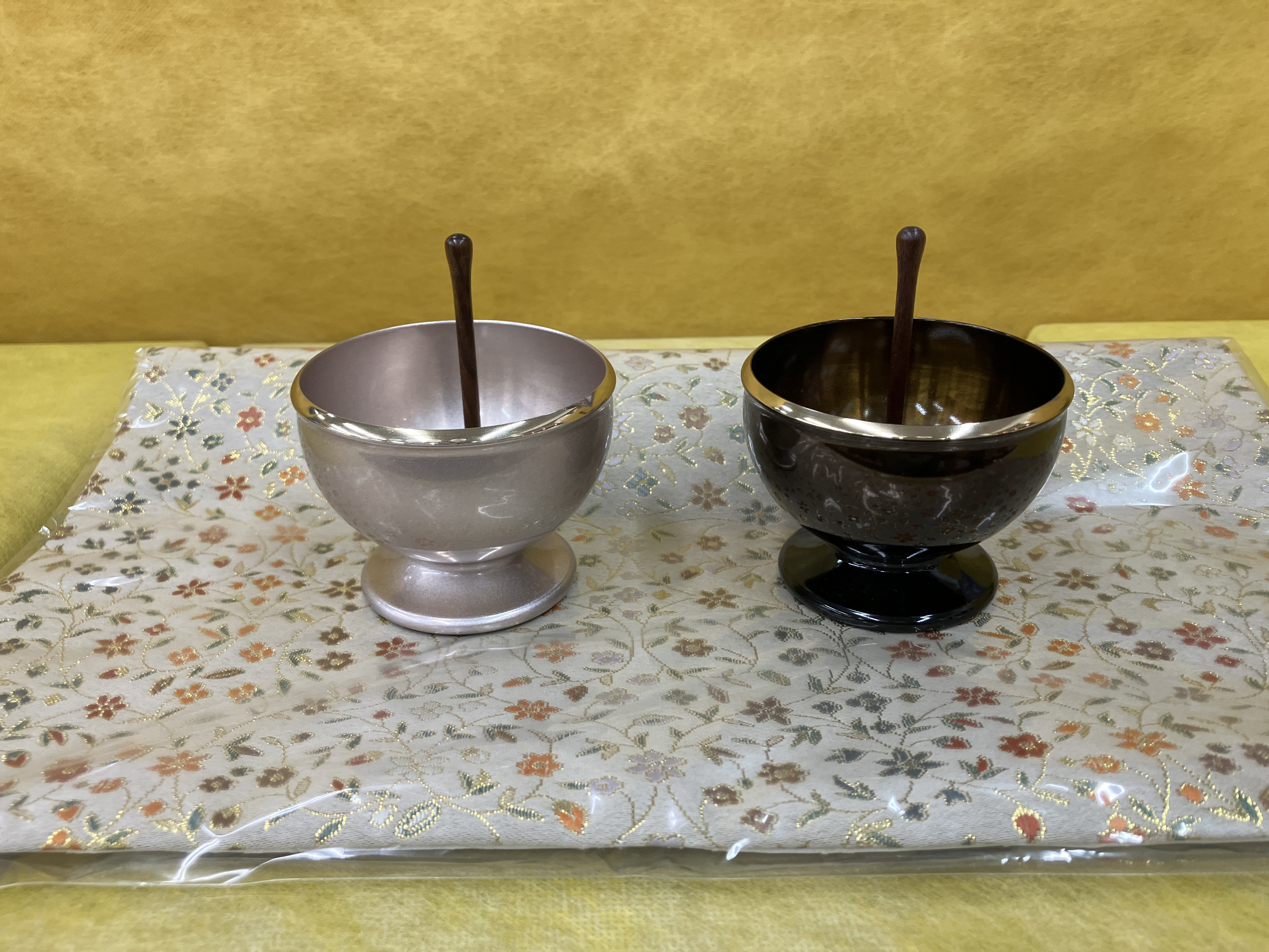 パール&オークブラウンです。どちらもシックな色味で、他の仏具と合わせやすい色味です。お盆を前におりんのお買い換えを考えられる方も多く、モダンなタイプのおりんの中ではご好評いただいております。是非この機会に、一度お店で音を鳴らしてみて下さい。