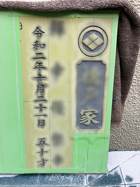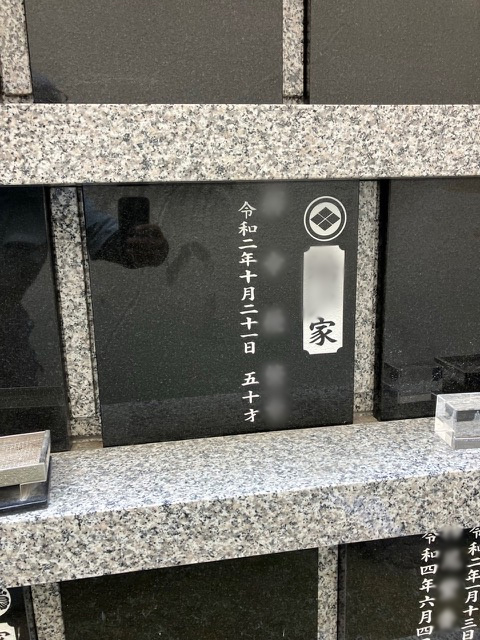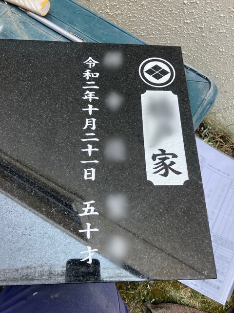 今回の納骨堂は、「家紋と浮き彫り名字、戒名」になります。