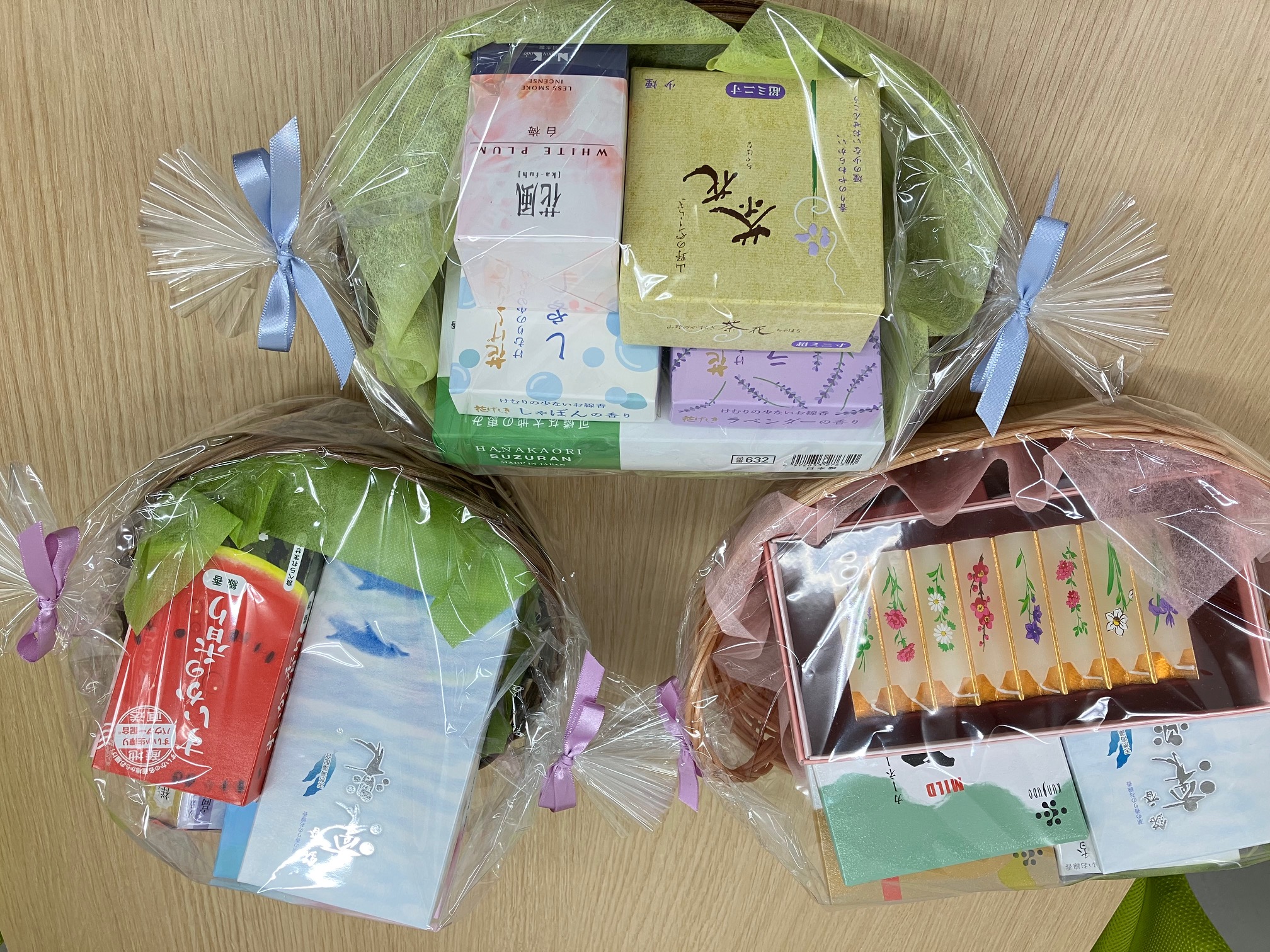 定番の箱詰めではなく、籠盛りのお線香ローソクセットもあります。