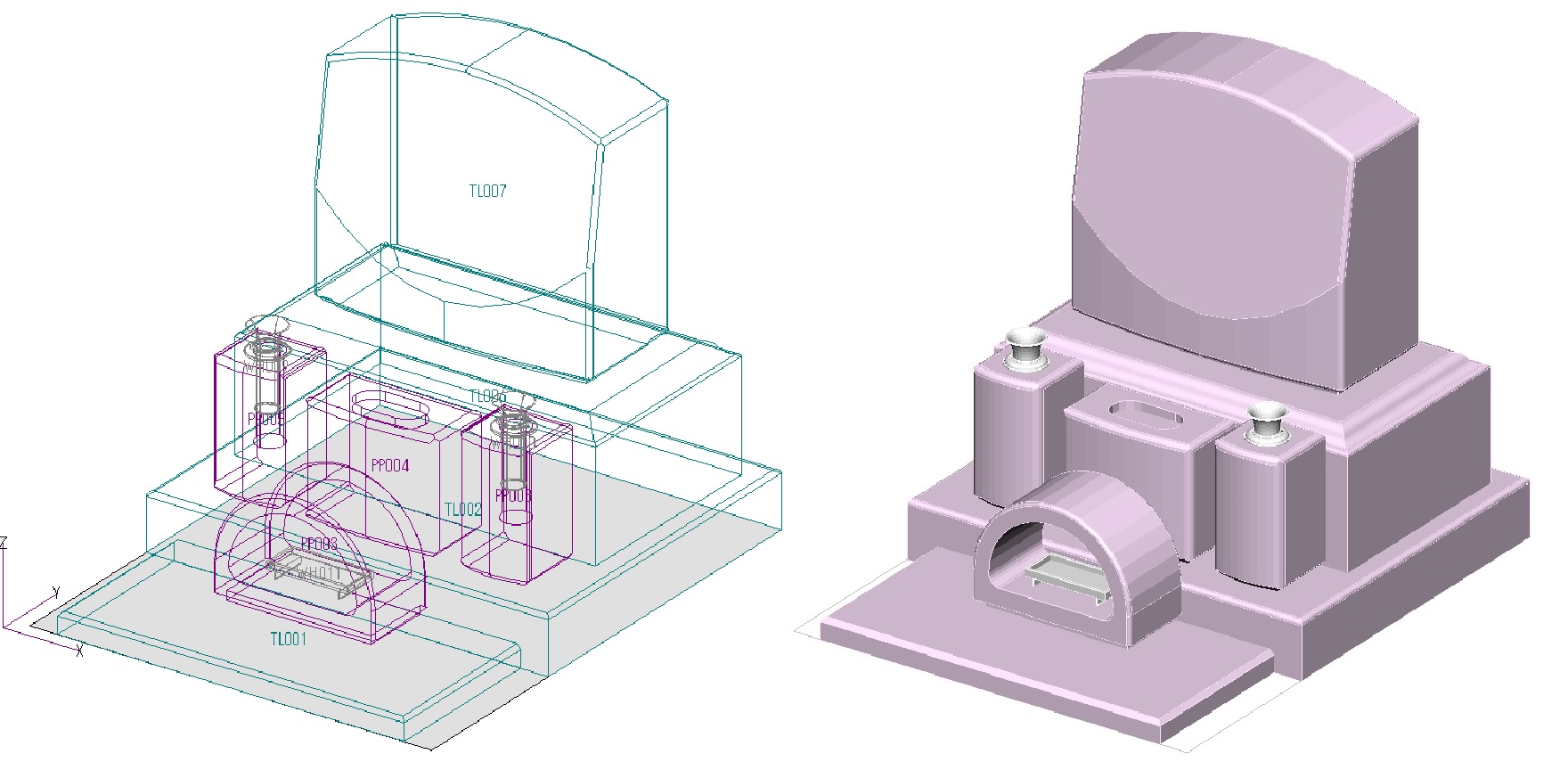 石塔正面が平面と曲面で構成されたデザイン。