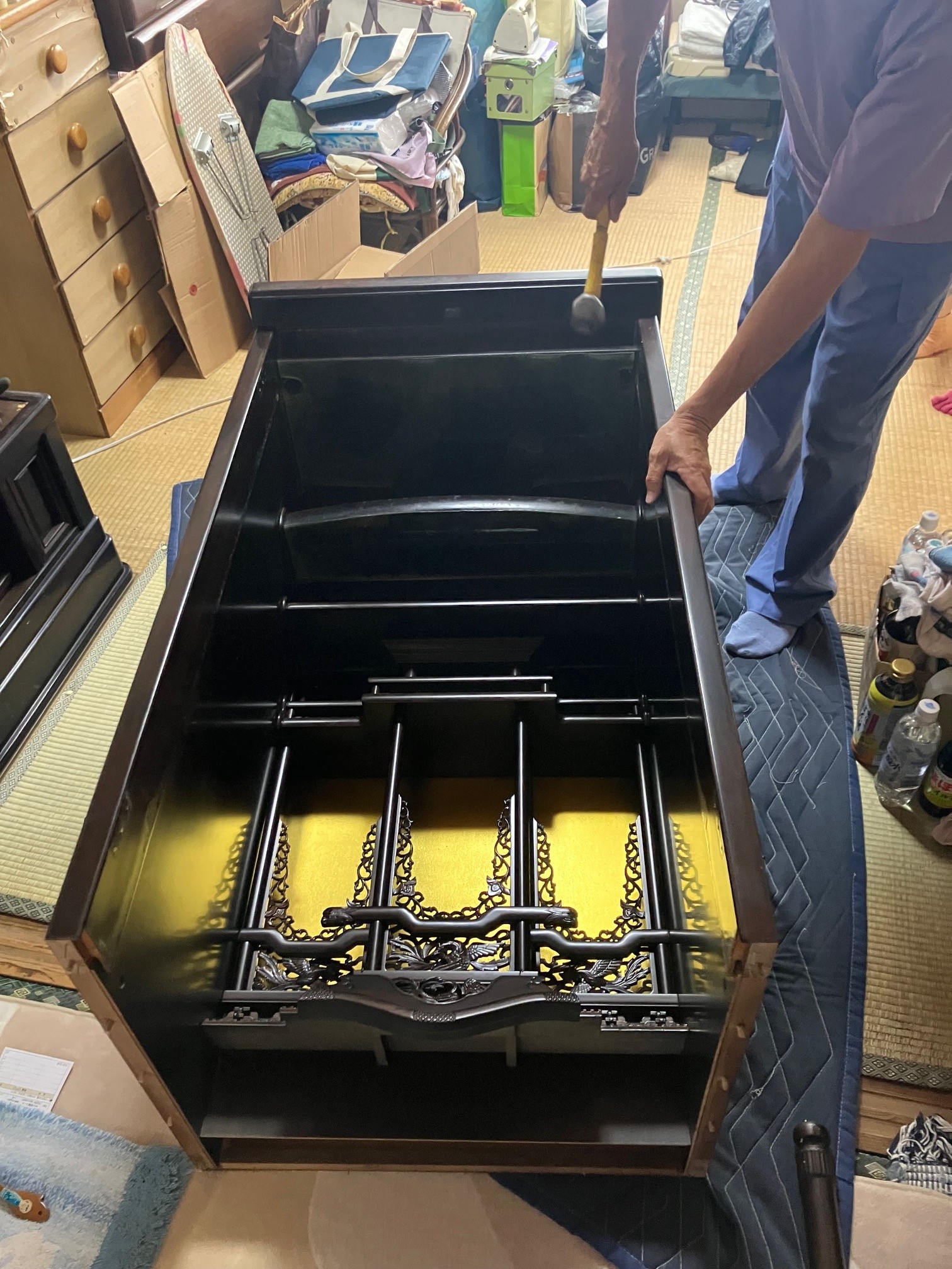 今回のケースはお仏壇を設置した後に、手摺りをつけるなどのリフォームで家からそのままでは運び出せませんでした。