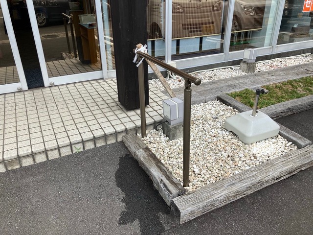 お仏壇のやまき 裾野店の出入り口の前に、手すりを設置しました。