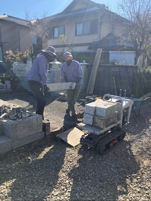 石碑は右サイドから運搬車で運び出しました。