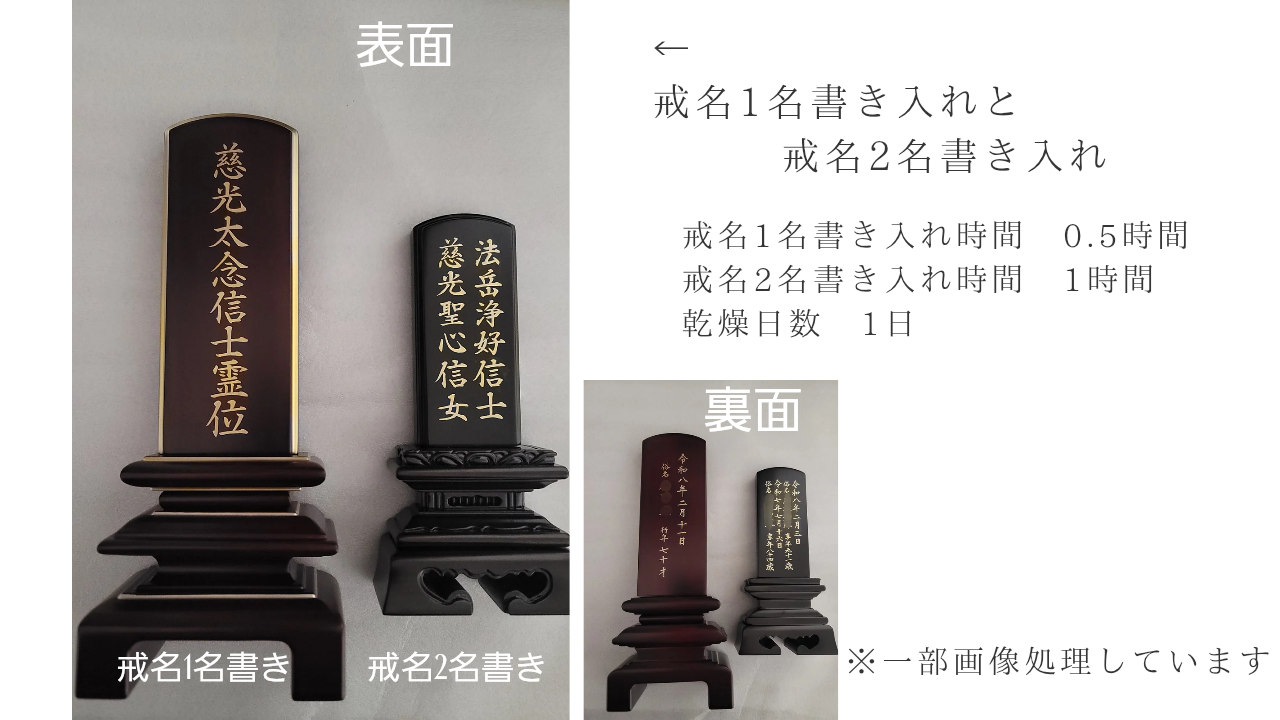 ⇑ 戒名書き入れ(1名書き&連名書き)の完成画像。