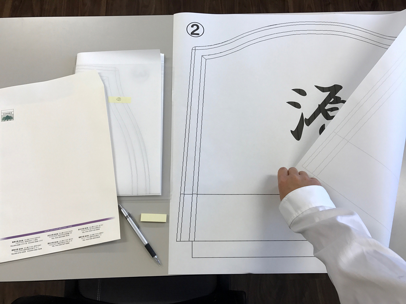 先日、お店の方から依頼があり、墓石の竿石原稿の原寸大を作成いたしました。