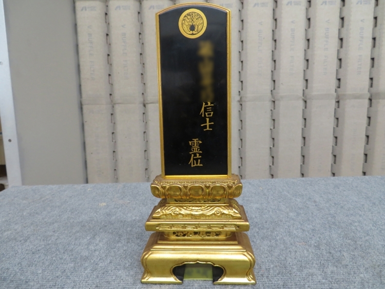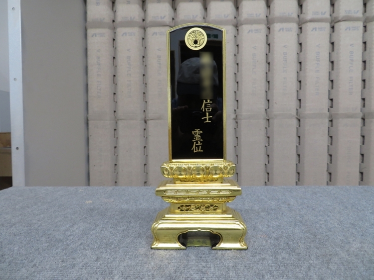 今回はこちらのお位牌のクリーニングを 行っていきます。 (※戒名の一部を画像処理してあります)