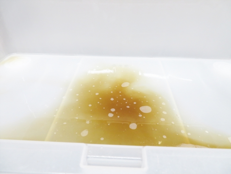 全ての部品を洗い終えました。 洗い終えた頃には、透明だった水が こんなにも茶色く濁っていました。 汚れの凄さが見てわかります。