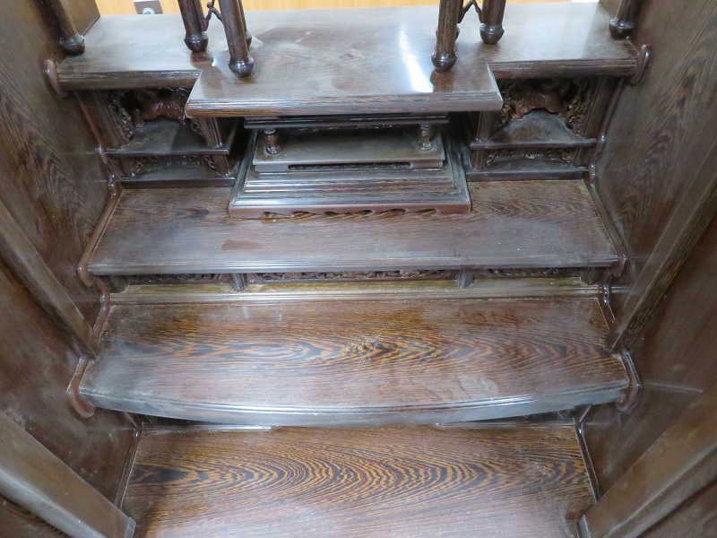 仏壇の中の部分です。 扉も汚れていますが 中部分も埃が目立ちます。