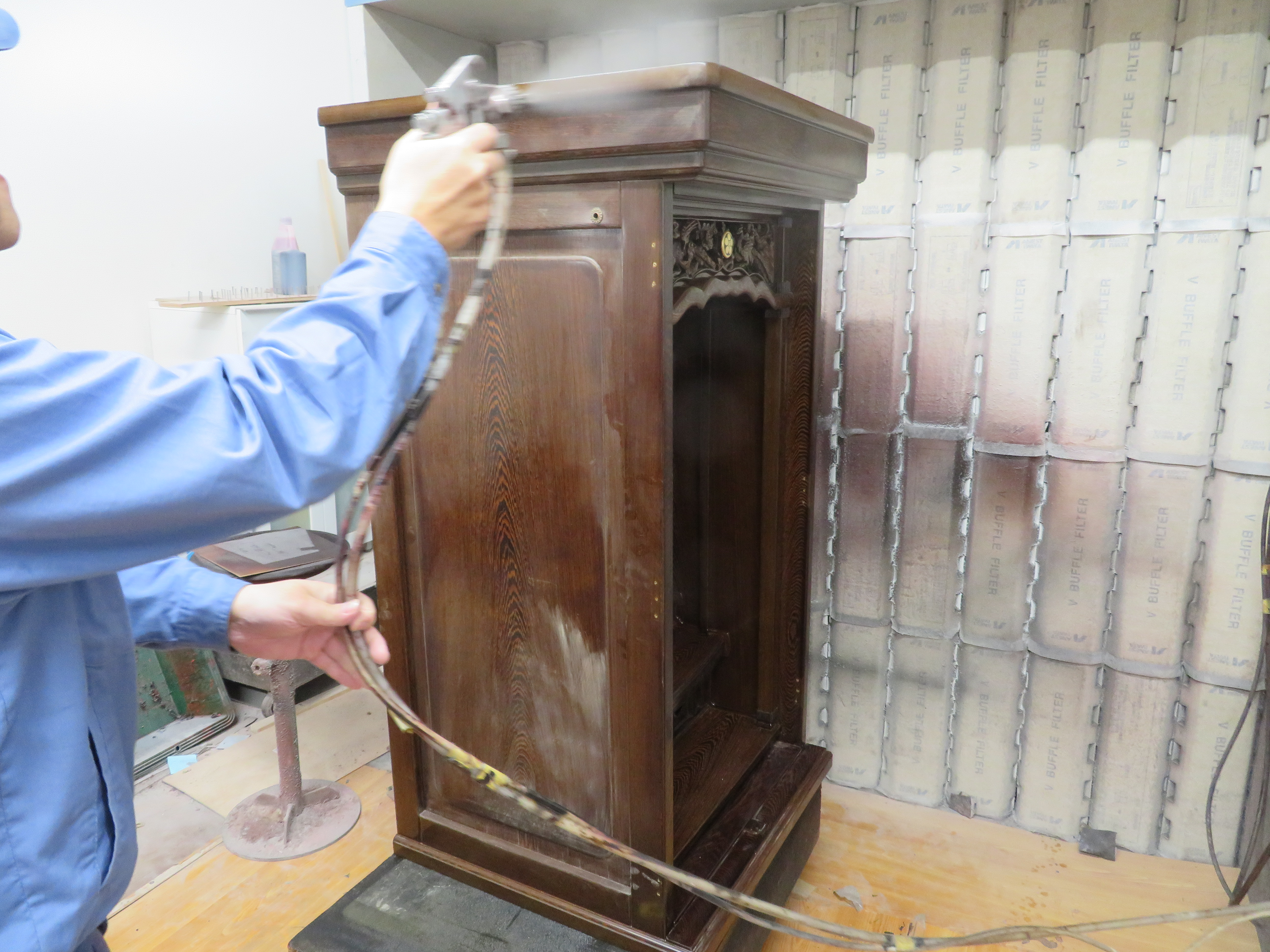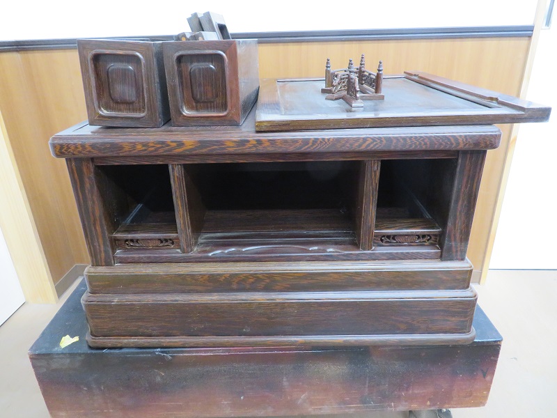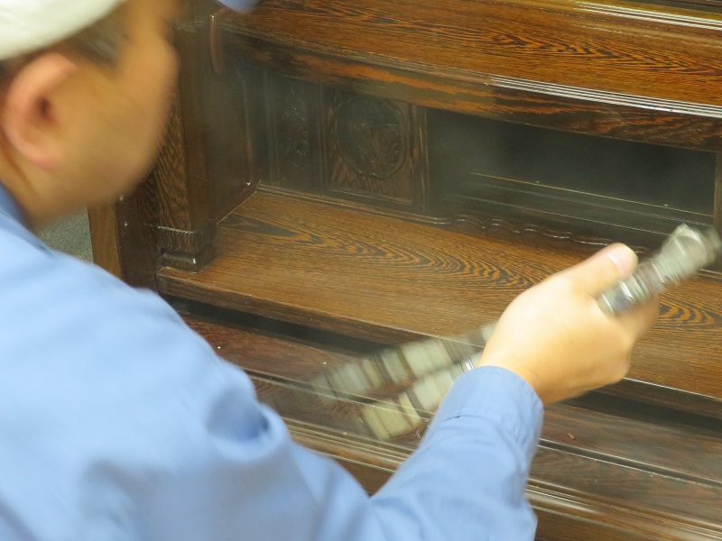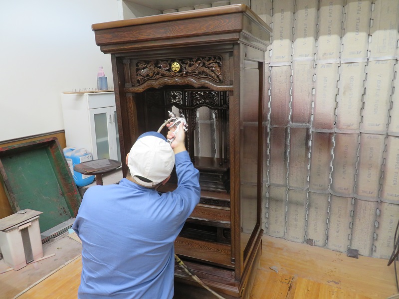 仏壇の下台部分や仏壇の細かな部品などにも ペーパー掛けを行いました。