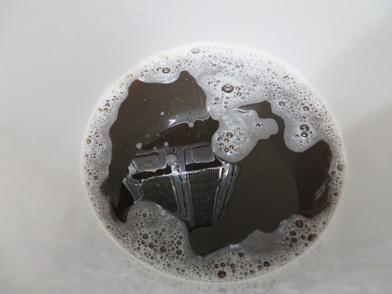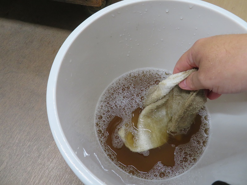 汚れた布を水で洗います。