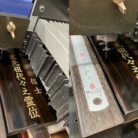 レイアウト作成後、彫刻機に位牌をセットして加工となります。