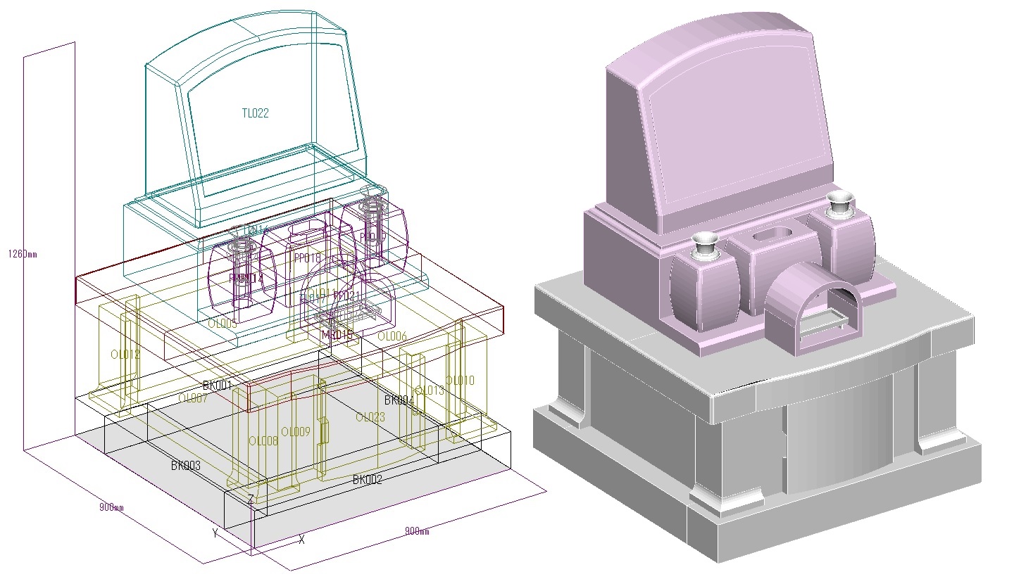 舞台は一枚天場を前後に割り、前天場に合わせ蓋石正面にR加工を施しております。