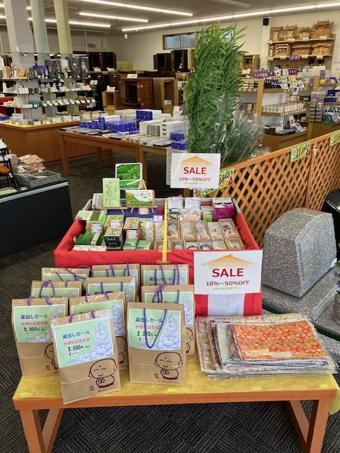 お仏壇のやまきでは本日より「蔵出し商品大放出セール」が始まります。県内7店舗でお買い得な商品を多数揃えております。また通常年始に行う福袋も今回のセールでは「蔵出し詰合せ袋」として準備しました。1万円相当の商品が3千円で購入出来る各店限定10袋の大変お得な詰合せとなっております。