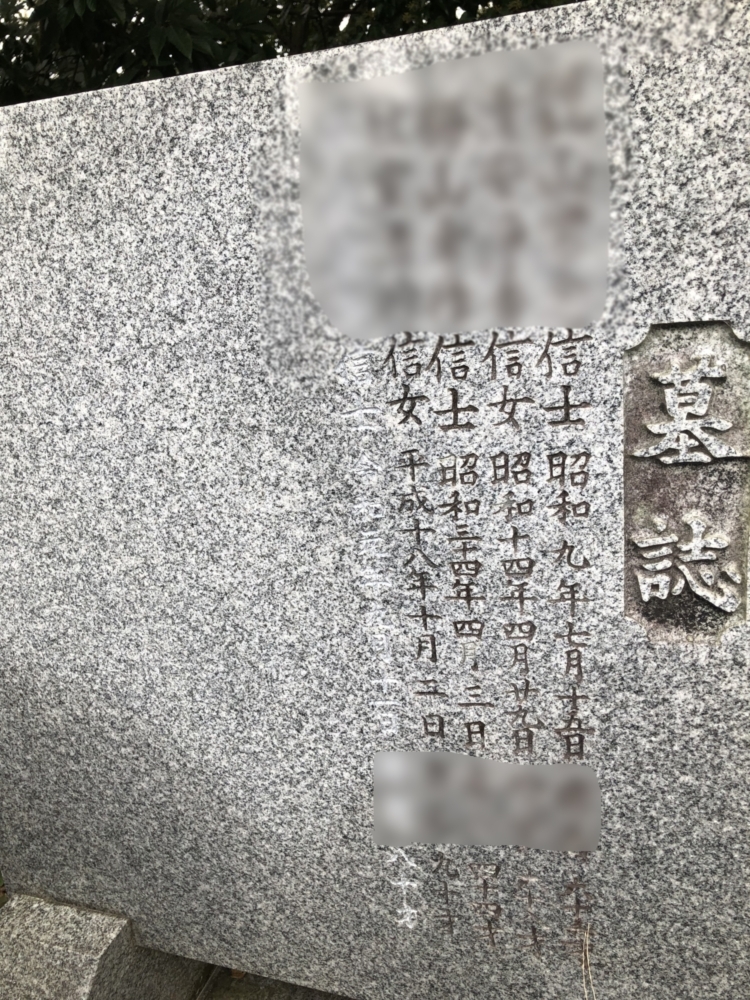 本通店のお客様のご依頼の戒名彫りに行ってきました。 (※戒名の一部を画像処理してあります) 今回は、お墓の脇に建てられている墓誌に 戒名を彫ってきました。