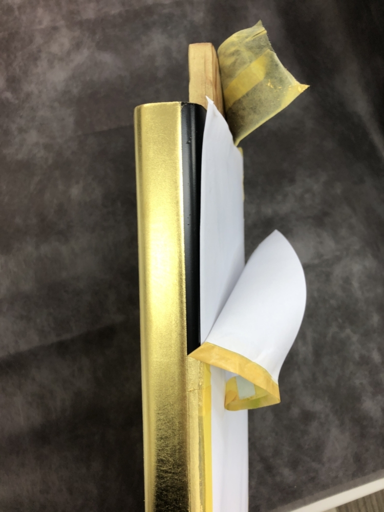 金箔が乾燥したので、養生テープを剥がしていきます。