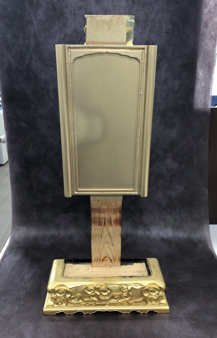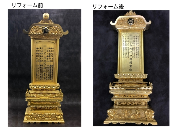 浜松店のお客様から、6.0巾×10寸の大きな寺位牌の札板の塗り直し・金箔リフォームのご依頼をいただきました。
