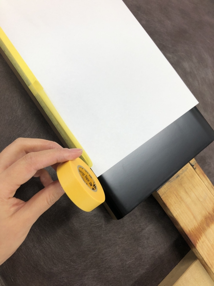 裏面には金箔を押さないため、養生テープで保護していきます。