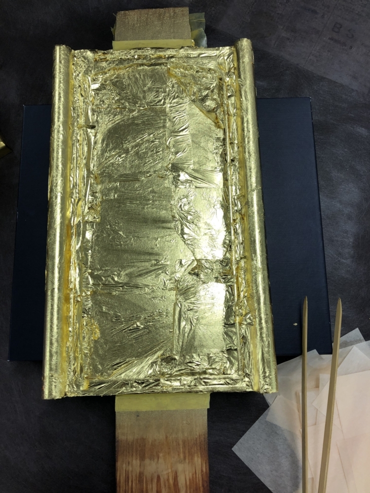 金箔押しを終えて、今日から3日間乾燥させます。 今日はここまでです。