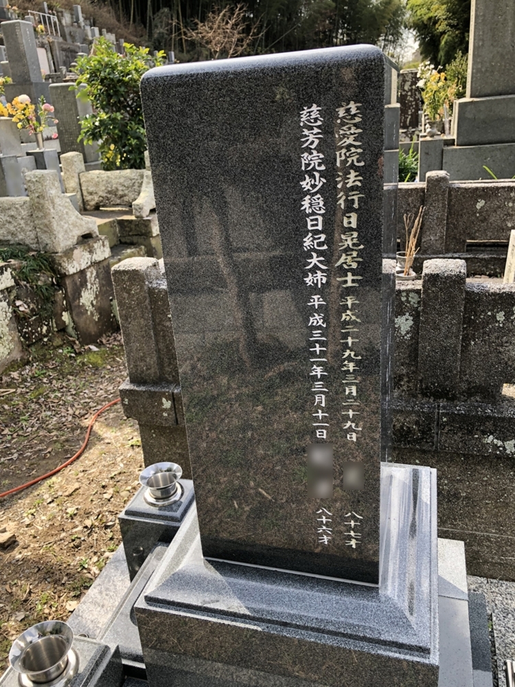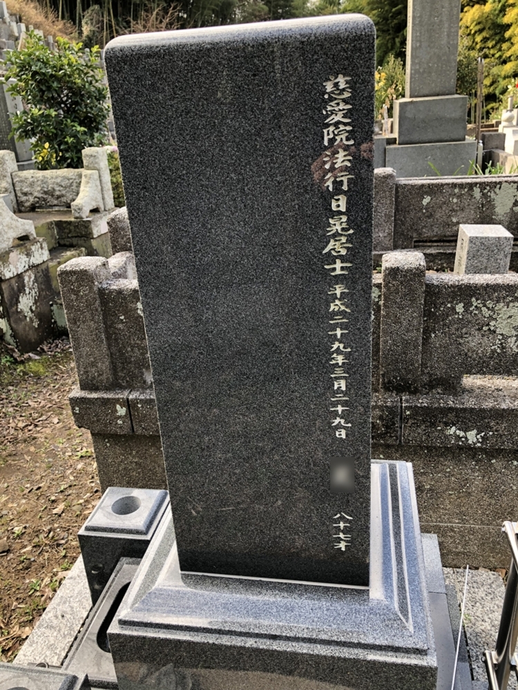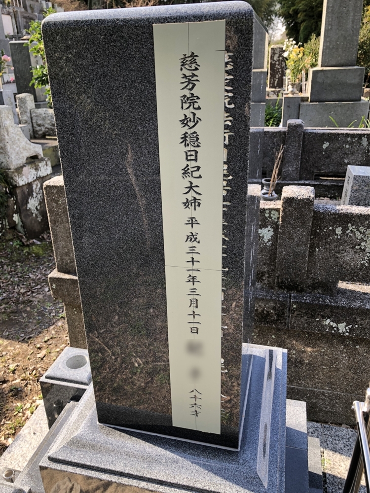 彫る前の状態。 (※戒名の一部を画像処理してあります)